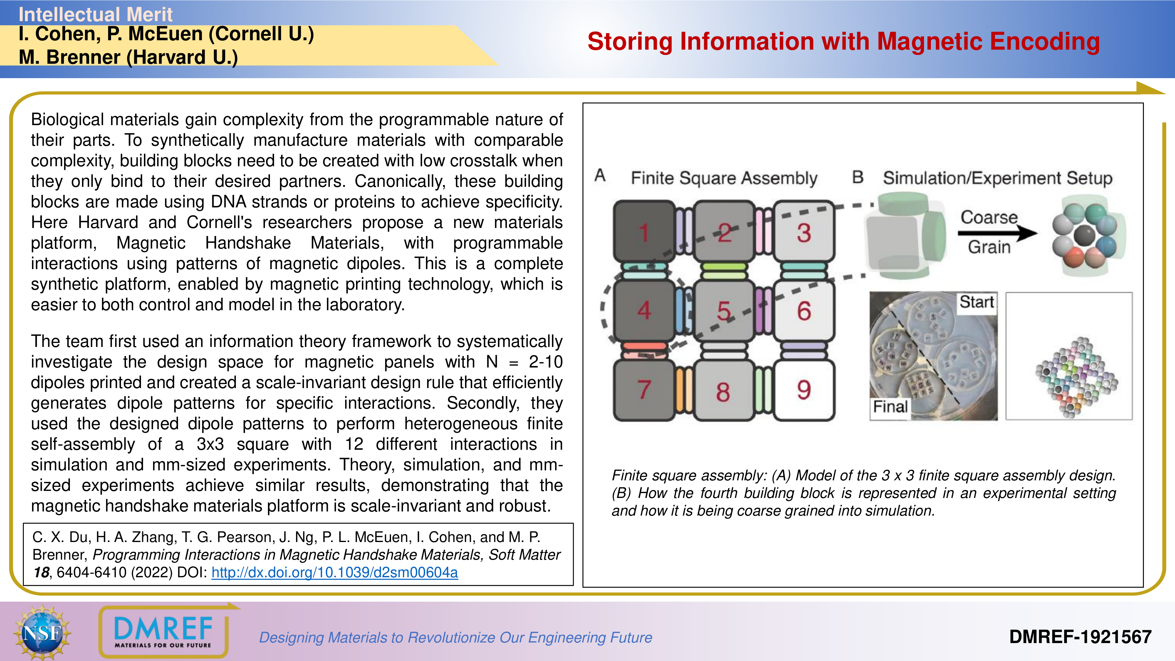 Here Harvard and Cornell's researchers propose a new materials platform, Magnetic Handshake Materials, with programmable interactions using patterns of magnetic dipoles. This is a complete synthetic platform, enabled by magnetic printing technology, which is easier to both control and model in the laboratory.