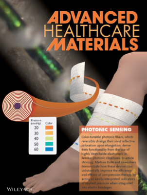 Medical textiles are widely used to exert pressure on human tissues during treatment of post-surgical hematoma, burn-related wounds, chronic venous ulceration, and other maladies. However, the inability to dynamically sense and adjust the applied pressure often leads to suboptimal pressure application, prolonging treatment or resulting in poor patient outcomes. Here, a simple strategy for measuring sub-bandage pressure by integrating stretchable optomechanical fibers into elastic bandages is demonstrated. Specifically, these fibers possess an elastomeric photonic multilayer cladding that surrounds an extruded stretchable core filament. They can sustain repetitive strains of over 100%, and respond to deformation with a predictable and reversible color variation. Integrated into elastic textiles, which apply pressure as a function of their strain, these fibers can provide instantaneous and localized pressure feedback. These colorimetric fiber sensors are well suited for medical textiles, athletic apparel, and other smart wearable technologies, especially when repetitive, large deformations are required.