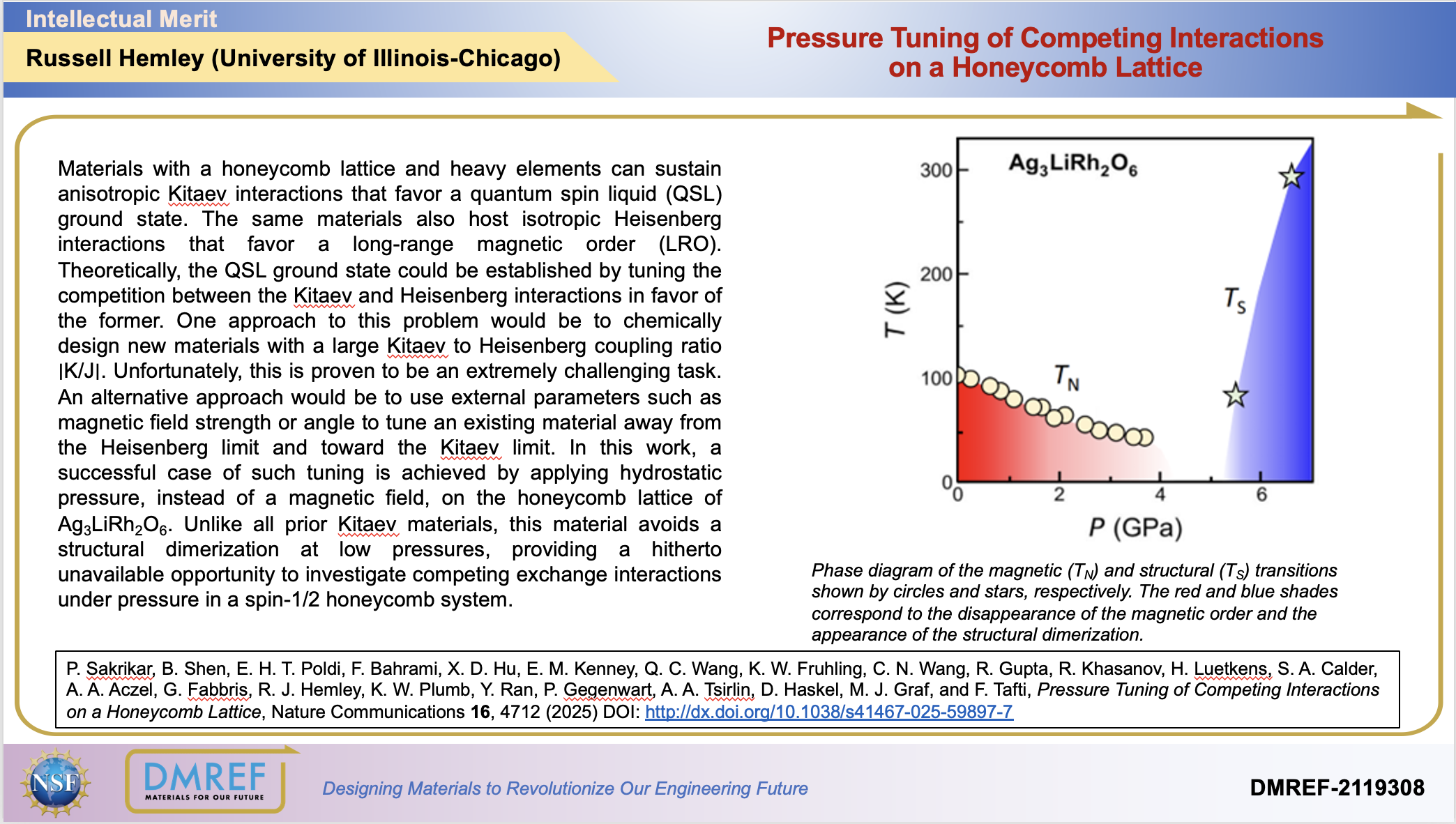 Materials with a honeycomb lattice and heavy elements can sustain anisotropic Kitaev interactions that favor a quantum spin liquid (QSL) ground state. The same materials also host isotropic Heisenberg interactions that favor a long-range magnetic order (LRO). Theoretically, the QSL ground state could be established by tuning the competition between the Kitaev and Heisenberg interactions in favor of the former. One approach to this problem would be to chemically design new materials with a large Kitaevto Heisenberg coupling ratio ∣K/J∣. Unfortunately, this is proven to be an extremely challenging task. An alternative approach would be to use external parameters such as magnetic field strength or angle to tune an existing material away from the Heisenberg limit and toward the Kitaev limit. In this work, a successful case of such tuning is achieved by applying hydrostatic pressure, instead of a magnetic field, on the honeycomb lattice of Ag3LiRh2O6. Unlike all prior Kitaev materials, this material avoids a structural dimerization at low pressures, providing a hitherto unavailable opportunity to investigate competing exchange interactions under pressure in a spin-1/2 honeycomb system.