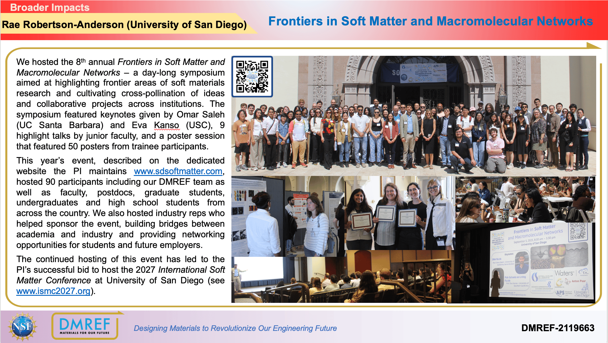 The continued hosting of this event has led to the PI’s successful bid to host the 2027 International Soft Matter Conference at University of San Diego (see www.ismc2027.org).